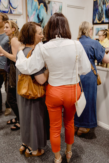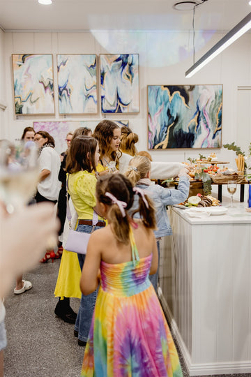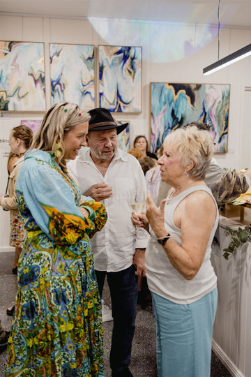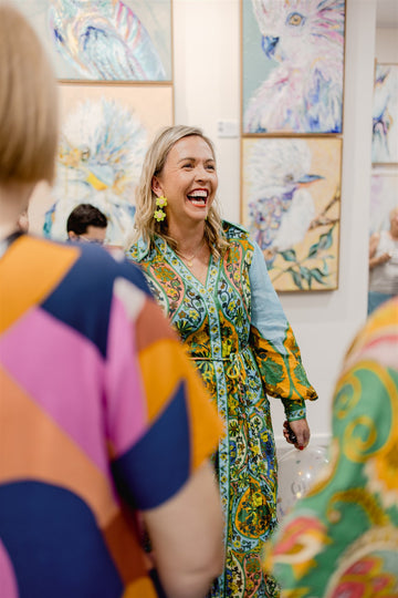 My journey’s been anything but linear. I’ve worn many hats (often fabulous ones): from showing handbags on the runway at New York Fashion Week, to flipping houses with a baby on my hip, to turning rundown pubs into buzzing local gems. Through it all, I’ve chased colour, creativity, and connection – and now I’m right where I’m meant to be: painting joy for a living.