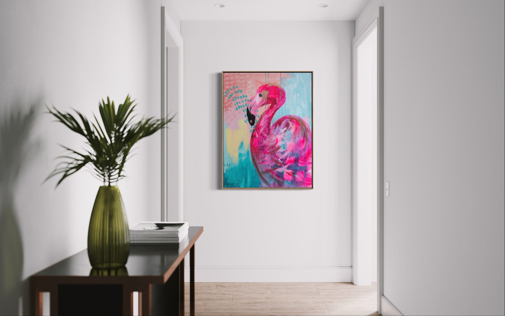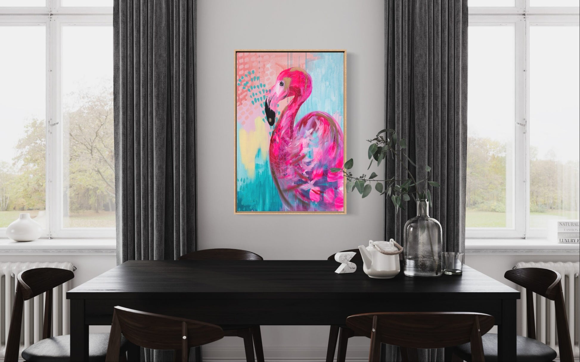 My sister and I once lived in Africa and volunteered for an aids prevention program in Kenya. On a weekend off we snuck away and visited Nakuru National Park across the neighbouring border in Tanzania (circa 2005). Nakuru is a magical place where you can spot thousands of pink flamingos grazing at the watering hole surrounded by wildlife. The sight was magical and has been imprinted on my mind. I have loved Flamingos ever since.