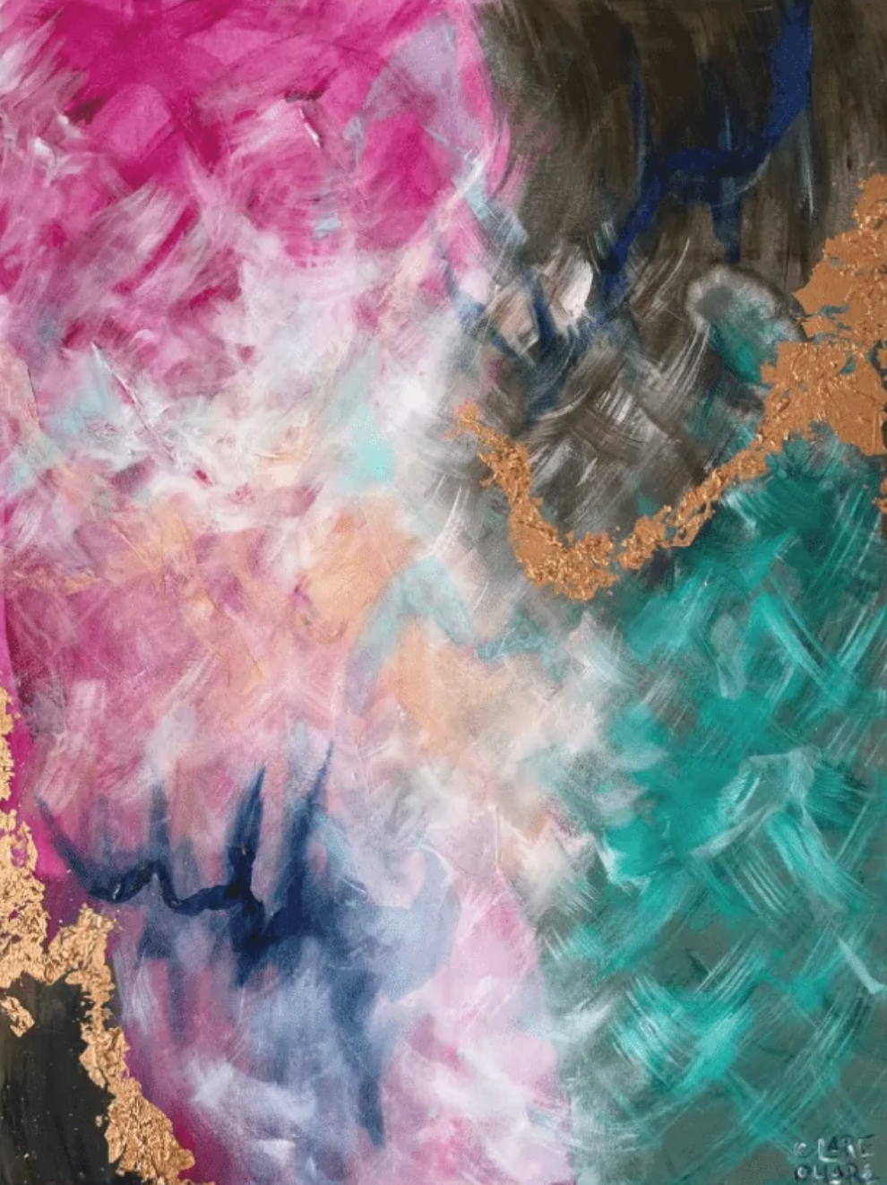 Originally created as a pair, Gold In The Cracks and Heart Of Gold are inspired by the colours recently seen on a sunset hike in Tasmania. The sky looked stunning, with flakes of gold peering through.